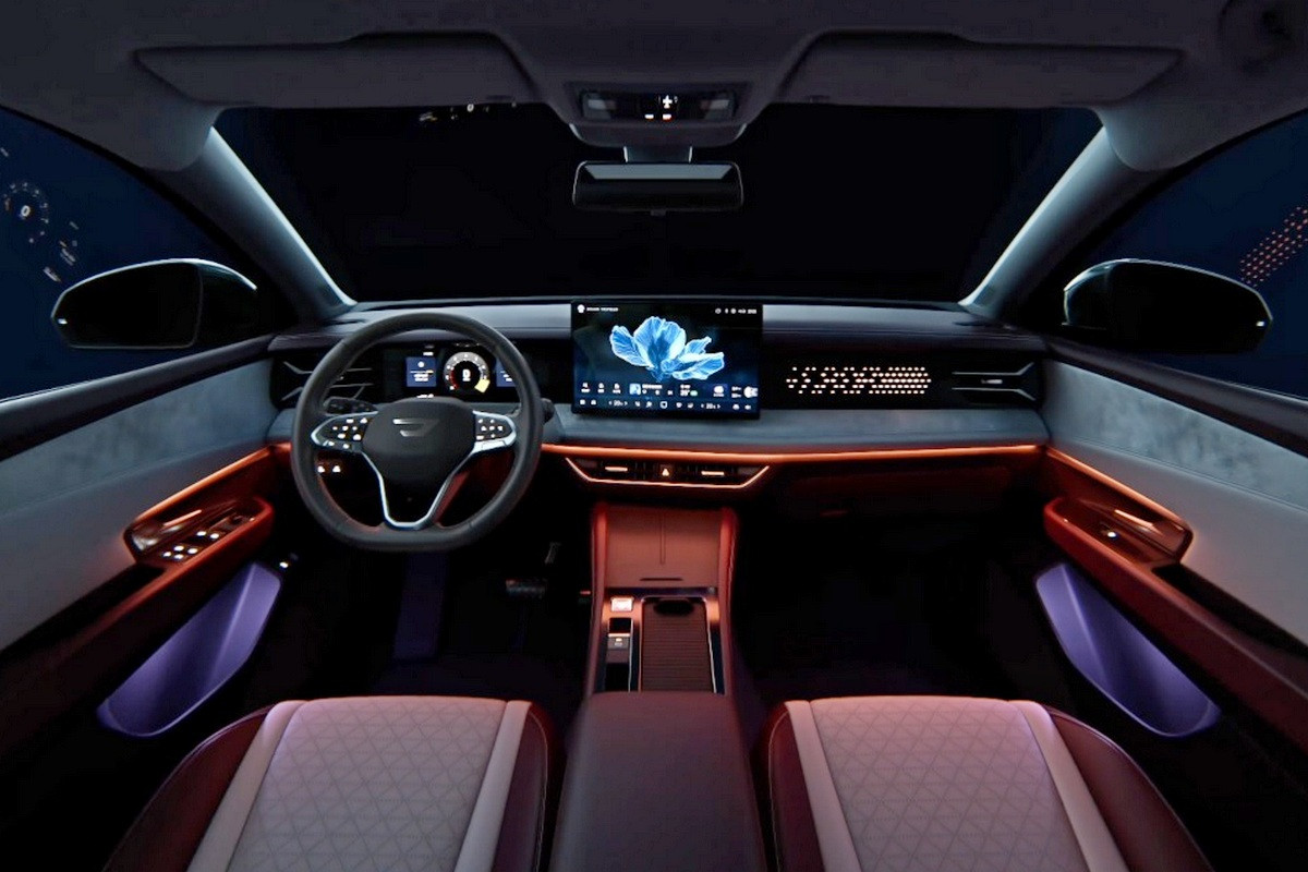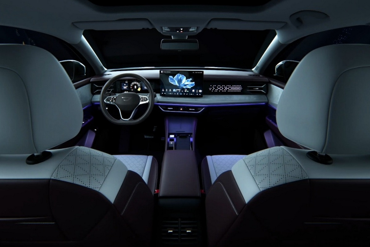 VS8 досталась безрамочная решетка, как у VS7. Однако кузов, бамперы, фары и задние фонари у флагманского кроссовера – оригинальные. Салон тоже оформлен в новом для бренда стиле. Jetta VS8 имеет более крупный планшет мультимедийной системы, который «прилеплен» к передней панели, тогда как у прочих паркетников марки экран встроен в панель. Отдельного блока управления «климатом» тут нет – все настройки вшиты в тачскрин. На центральном тоннеле расположены площадка для беспроводной зарядки, прикрытый шторкой бокс и несколько физических кнопок. За переключение передач, судя по всему, отвечает подрулевой рычажок. В списке оборудования еще значатся цифровая приборка, панорамная крыша и атмосферная подсветка интерьера.