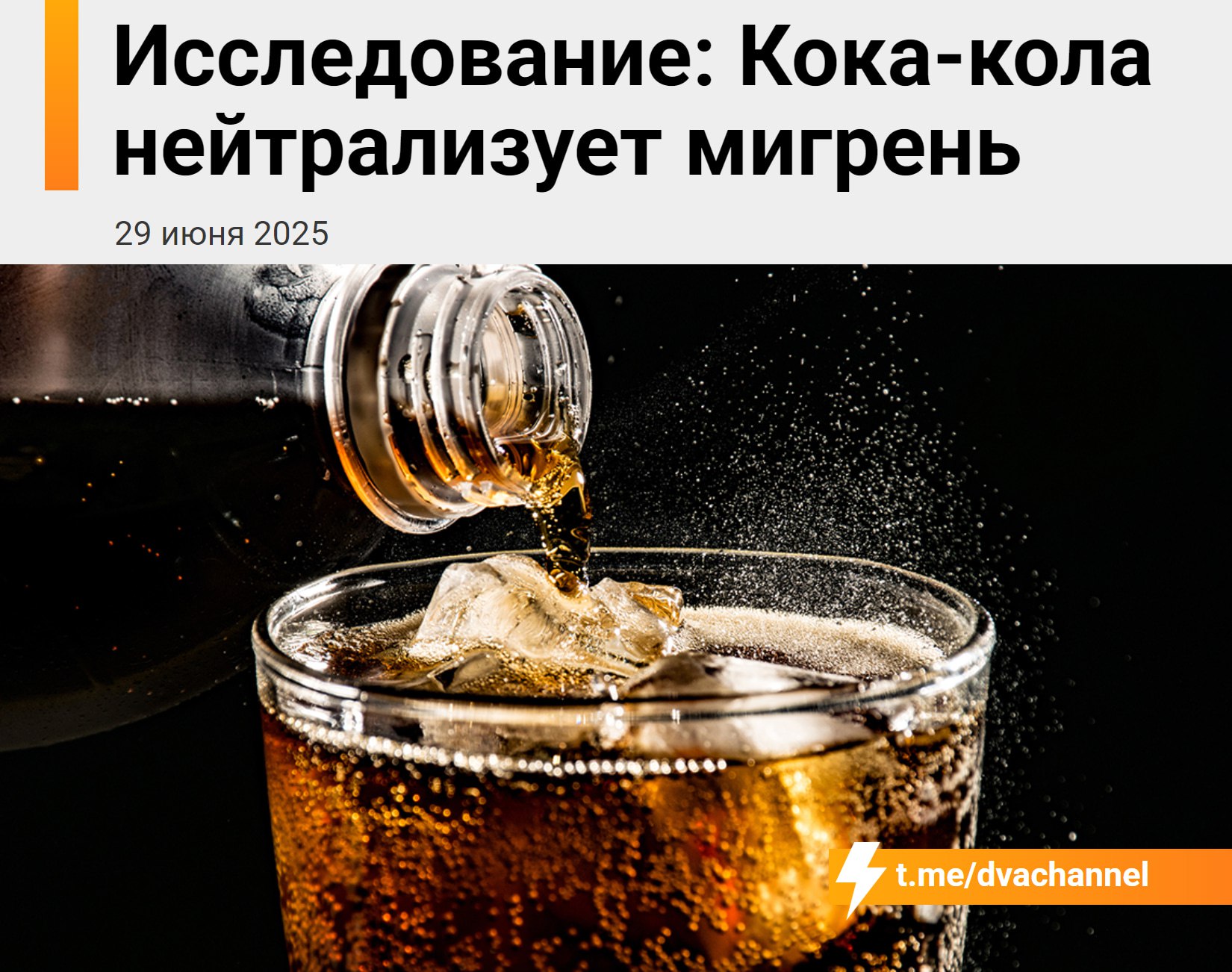 ❗️Теперь официально: Кока-кола убивает мигрень — учёные подтвердили хайповую теорию из соцсетей.