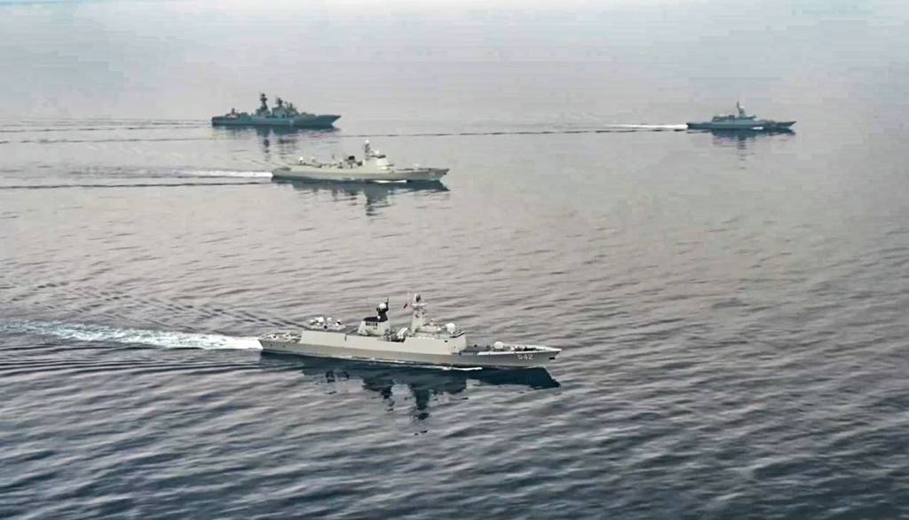Совместный отряд кораблей ВМФ России и ВМС Китая отразил воздушную атаку условного противника в ходе учений "Север/Взаимодействие – 2023". Видео © Telegram / Минобороны
