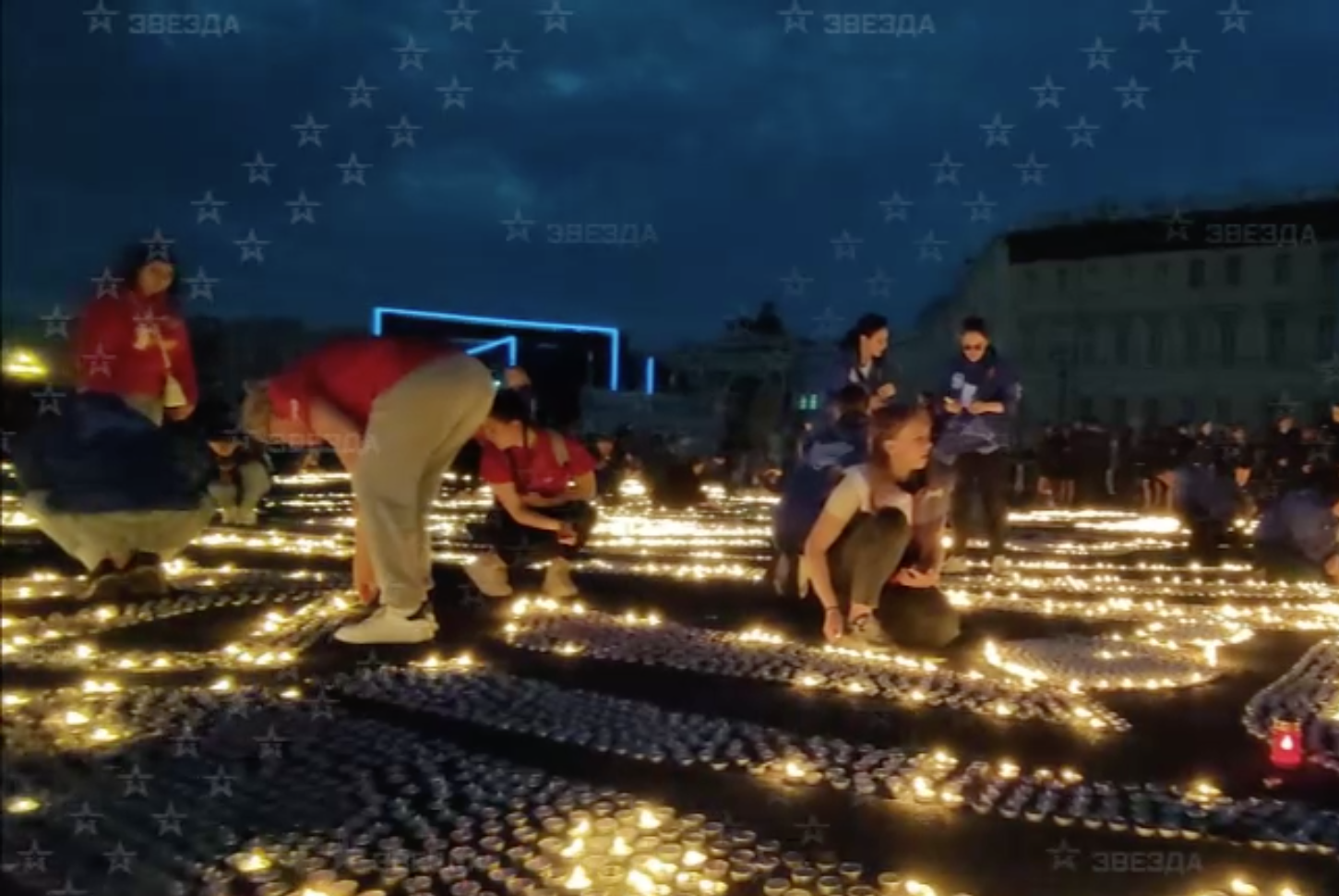 "Свеча памяти" на Дворцовой площади в Санкт-Петербурге. Видео © Телеканал "Звезда"