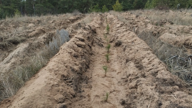 Работы провели на площади 0,7 га на месте, где в 2020 году были лесные пожары. Сосну высадили в рамках акции «Сохраним лес».