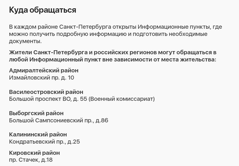 «По действующей в настоящее время нормативной базе единовременная материальная помощь в размере 500 тыс. руб. предоставляется <...> на основании заявления военнослужащего или члена добровольческого формирования, заключивших контракт о прохождении военной службы в Вооруженных Силах Российской Федерации с 01.03.2023 по 31.12.2023 на срок не менее 11 месяцев, через пункт отбора либо через Военный комиссариат, в случае если военнослужащий или член добровольческого формирования имеет место жительство (пребывания) в Санкт-Петербурге или постановку на воинский учет в Военном комиссариате на дату заключения контракта».