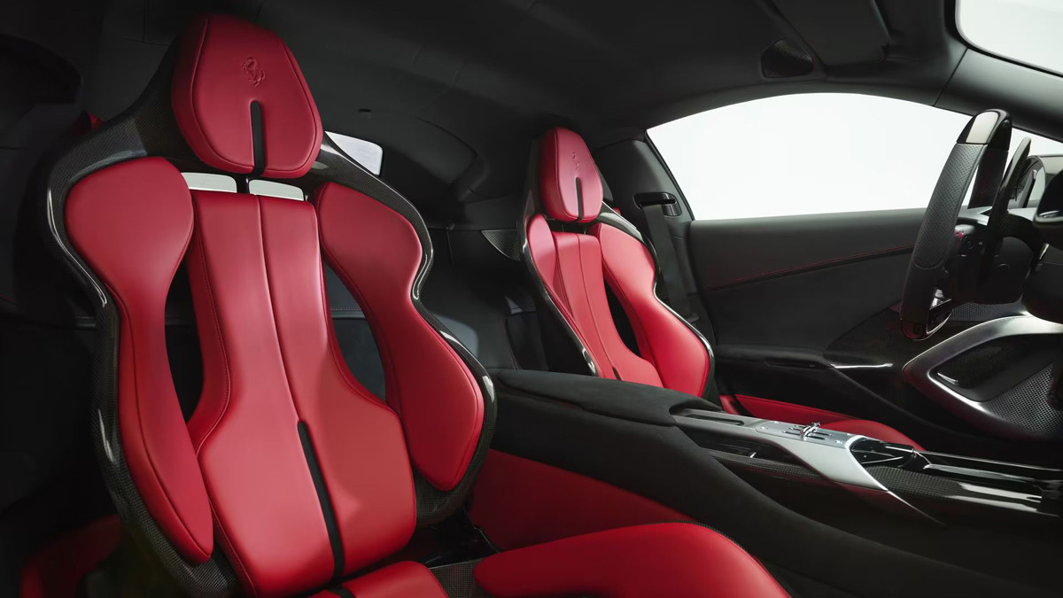 Салон Ferrari 12Cilindri многое позаимствовал у кроссовера Purosangue, хотя у суперкара не два дисплея, а три. Диагональ виртуальной приборки равна 15,6 дюйма, у тачскрина информационно-развлекательной системы – 10,25 дюйма, а переднему пассажиру достался экран на 8,8 дюйма. В списке оборудования есть беспроводная зарядка для смартфонов, а также акустическая система Burmester мощностью 1600 ватт с пятнадцатью динамиками.