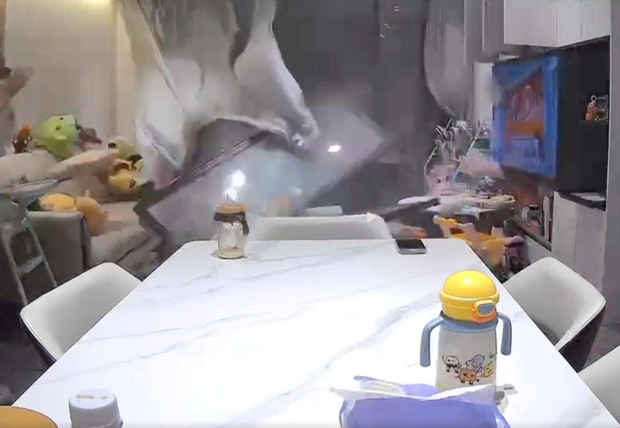 Eventually, after a frantic search of the whole house, Wan discovered that a floor-to-ceiling room window had been blown out completely. He also heard the sound of crying outside.