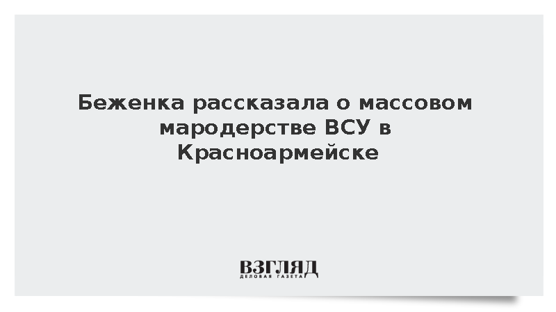 По ее слова, военные ВСУ регулярно занимались мародерством в домах жителей Красноармейска, включая кражу ковров, передает РИА «Новости». Власова добавила, что подобные случаи были распространены и воспринимались украинскими военными как норма. Власова сообщила: «Я старалась с ними (ВСУ) не общаться. У соседей, которые пустили их на квартиру, они вывезли все, когда выезжали. Полностью все. Соседка, Лена, ничего не могла сказать им, боялась. У них это нормально. Как в город выезжали, смотрим, груженые машины легковые, ковры, ну все (что есть в доме). Где они это все (взяли)? Мародерство».