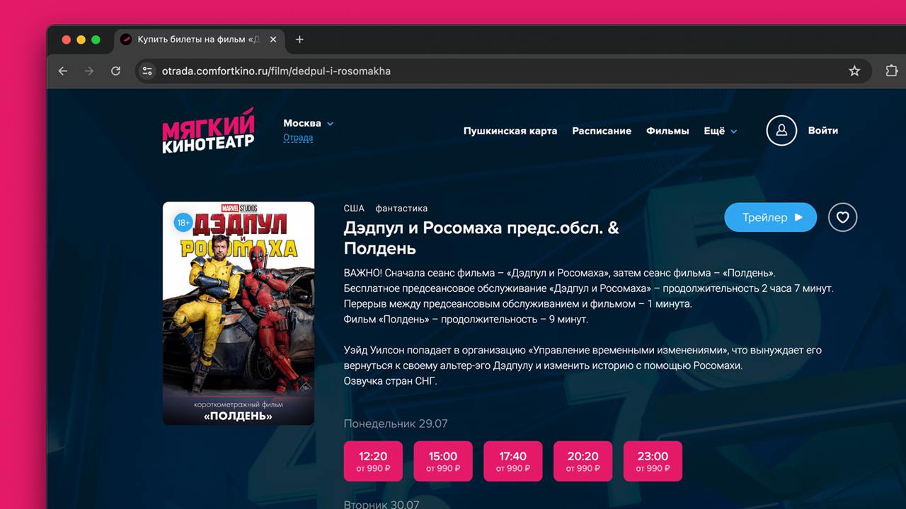 Показ фильма начнётся 29 июля, всего через четыре дня после старта мирового проката. Некоторые кинотеатры России уже открыли предпродажи.