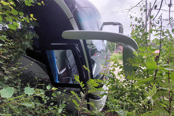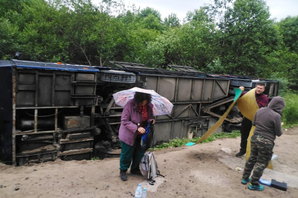 ДТП произошло на участке дороги между поселками Куркиёки и Койонсаари. По предварительным данным, водитель не справился с управлением при повороте, автобус съехал в кювет и перевернулся.