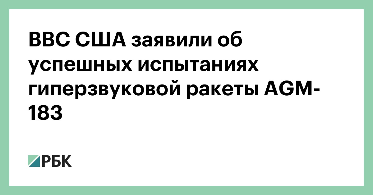 Военно-воздушные силы (ВВС) США провели успешное испытание гиперзвуковой ракеты AGM-183 класса «воздух — земля» в рамках программы по созданию оружия быстрого реагирования воздушного базирования (ARRW), передает Reuters со ссылкой на распространенное заявление ВВС.