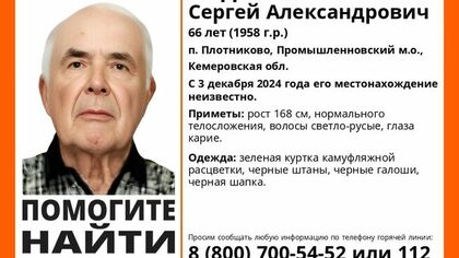 Как сообщили волонтеры ПСО "ЛизаАлерт", в поселке Плотниково, Промышленновский муниципальный округ, без вести пропал 66-летний Надымов Сергей Александрович. Его местонахождение неизвестно с 3 декабря.