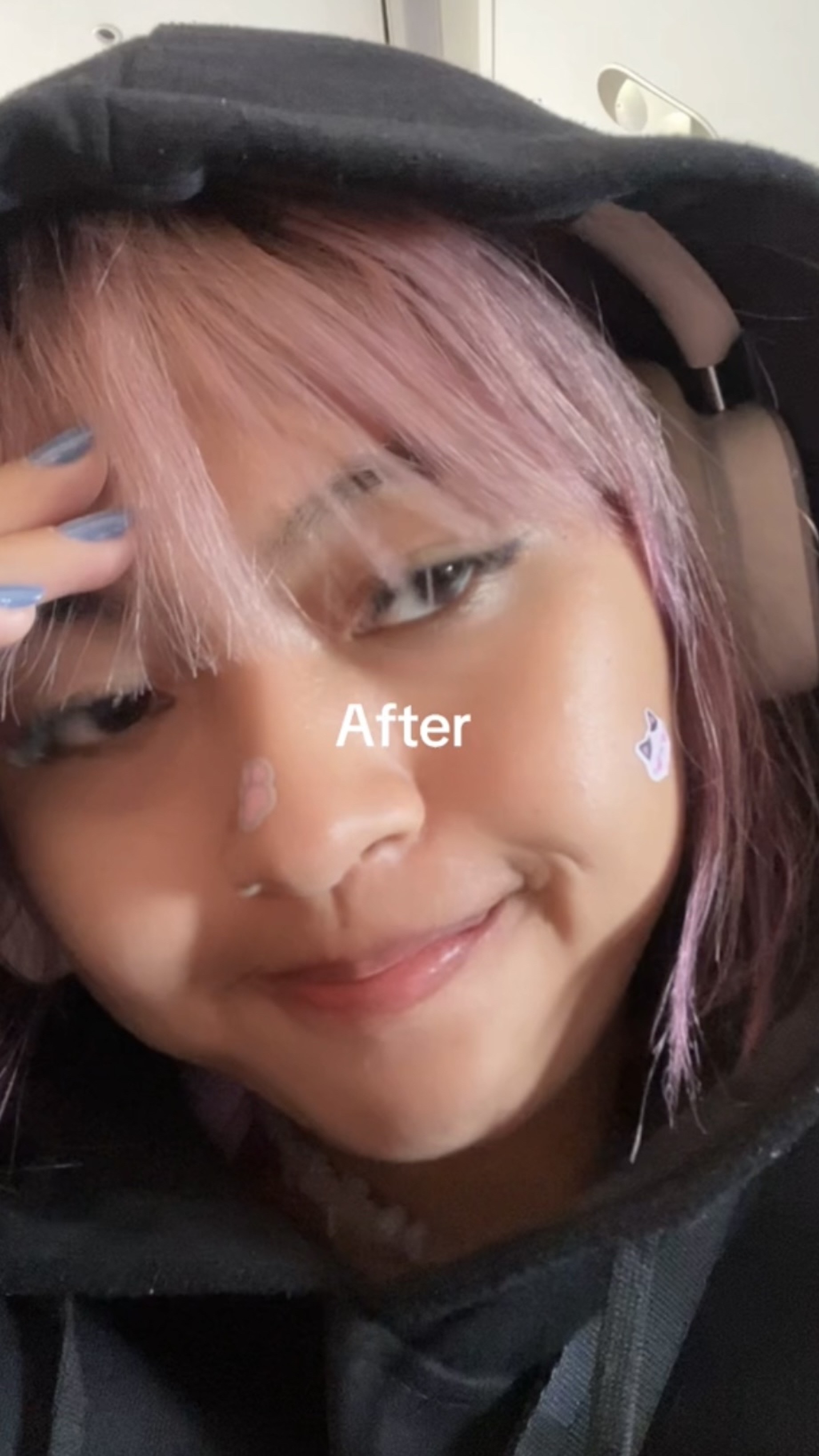 In a viral video clip, she captioned two selfies. The first picture, taken before she bumped into her boss, showed her posing with a peace sign.