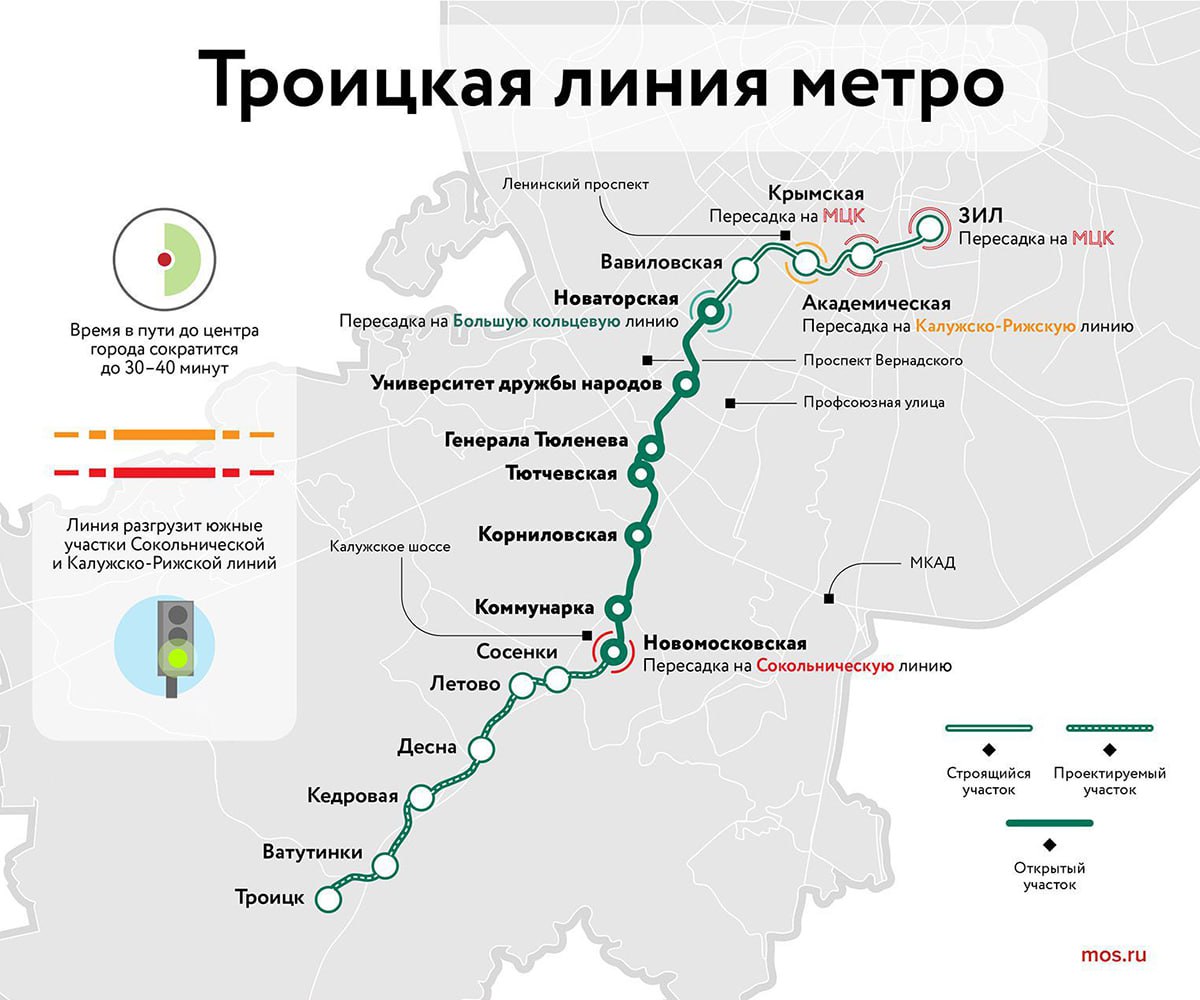 ❗️Столичный метрополитен дойдет до Троицка до 2030 года, когда будут запущены в эксплуатацию все 17 станций Троицкой линии метро, говорится в сообщении на официальном портале мэра Москвы.