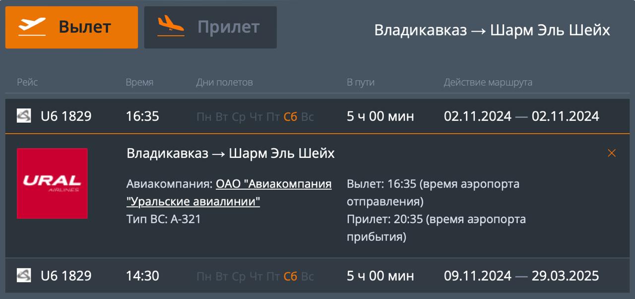 🇪🇬✈️ «Уральские авиалинии» со 2 ноября запустят прямые рейсы из Владикавказа в Шарм-эль-Шейх
