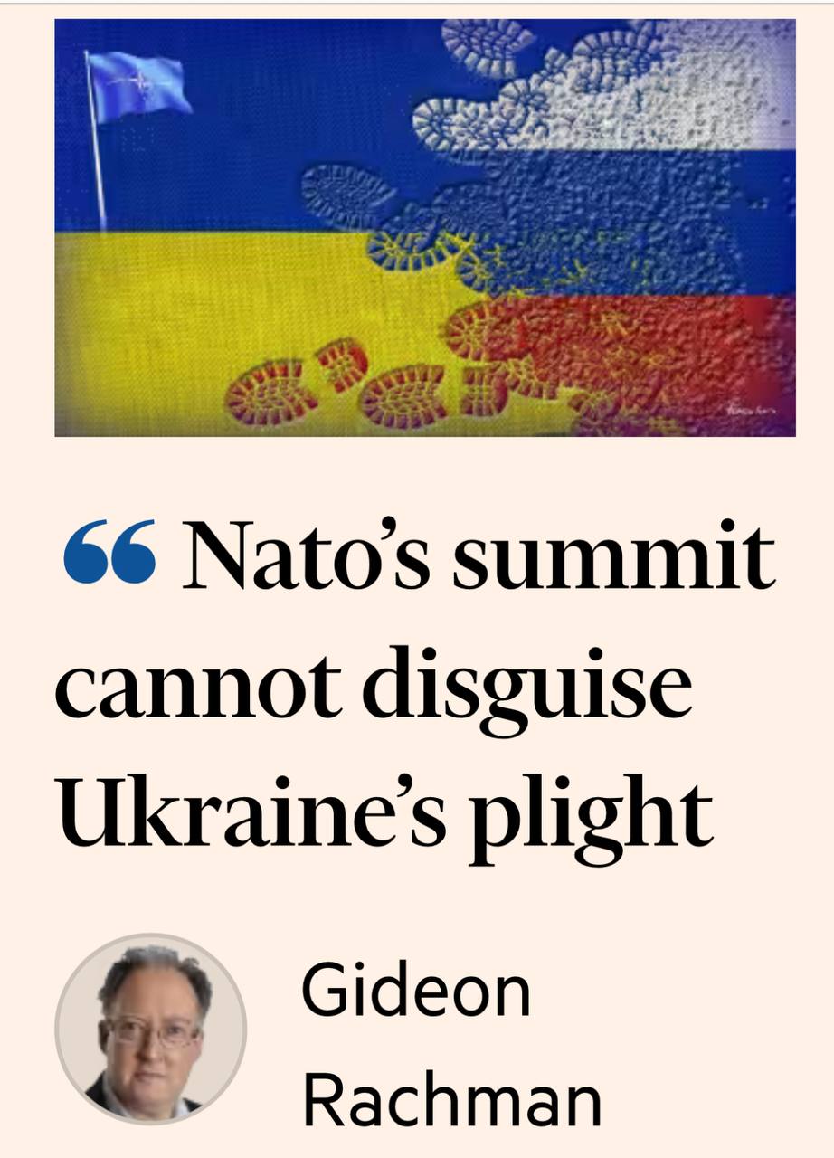 Ведущий аналитик Financial Times Гидеон Рахман бьет в колокола, говоря, что украинская армия истощается и полностью сточится уже к октябрю, если не будет массированной поддержки от НАТО.