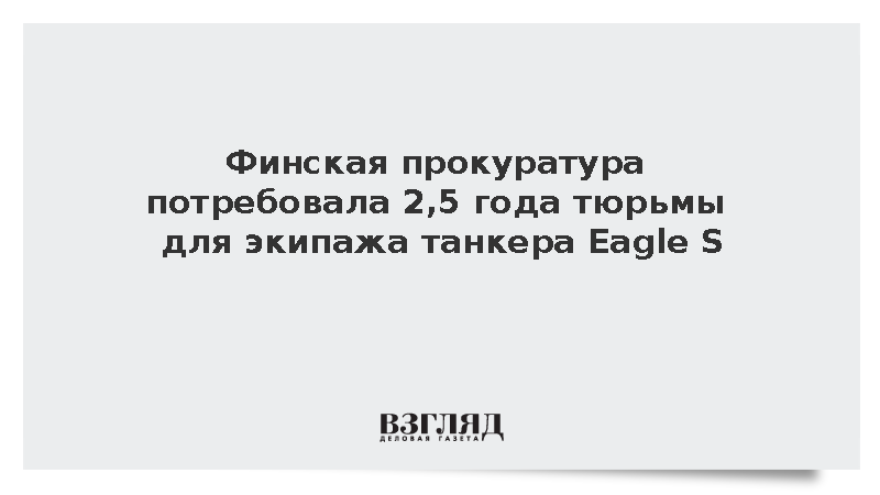 Прокуратура Финляндии потребовала лишения свободы на два года и шесть месяцев для капитана и двух помощников танкера Eagle S, передает ТАСС.