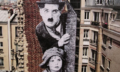 Франция, Париж. Кадр из кинофильма Чарли Чаплина «Малыш» (1921) изобразил на стене художник JR. Он описывает себя как «photograffeur» (фотограф и граффити-художник).