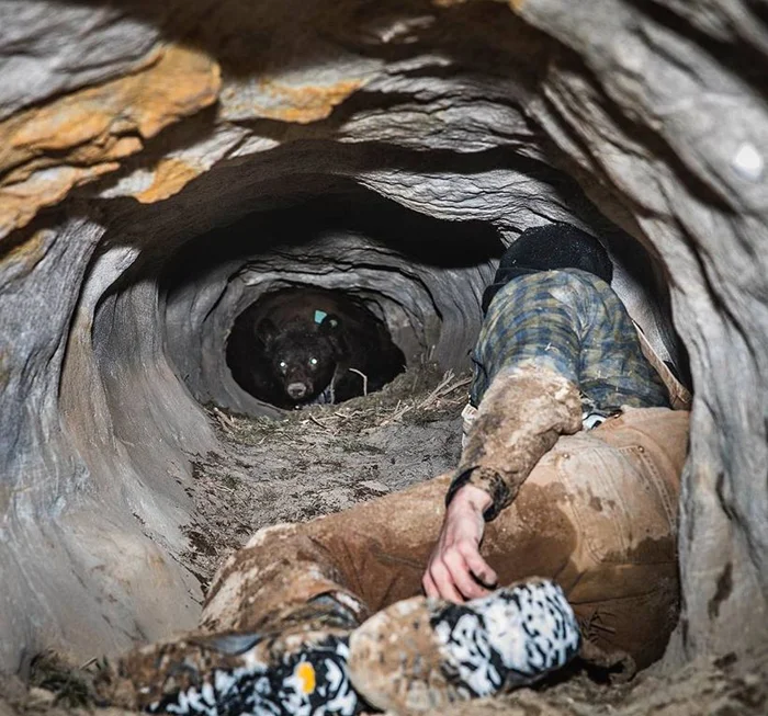 Получается, шатун — это не такая уж и редкая штука зимой. Если зверь проснулся раньше требуемого, разумеется, он будет голодный, невыспавшийся, злой и супер опасный. С голодухи медведь готов не то что человека сожрать — даже глину! Шатуны роют землю, выкапывают эту самую глину и набивают брюхо хотя бы ею. А это означает, что следы работы бурого землекопа в зимнем лесу — очень опасный знак.