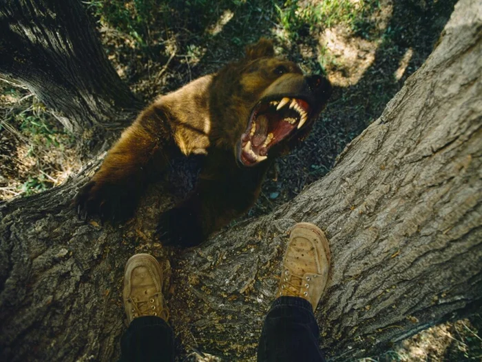 Прикидываться мертвым или лезть на дерево — идеи не самые мудрые. Медвед — зверь любопытный. Ему будет просто интересно поиграть лапкой со странным существом, которое не двигается и пахнет какашками. Ах да. Стрелять непосредственно в медведя не рекомендуют, потому что убить ты его — не убьешь, но мишке станет больно, и он на тебя крепко осерчает.