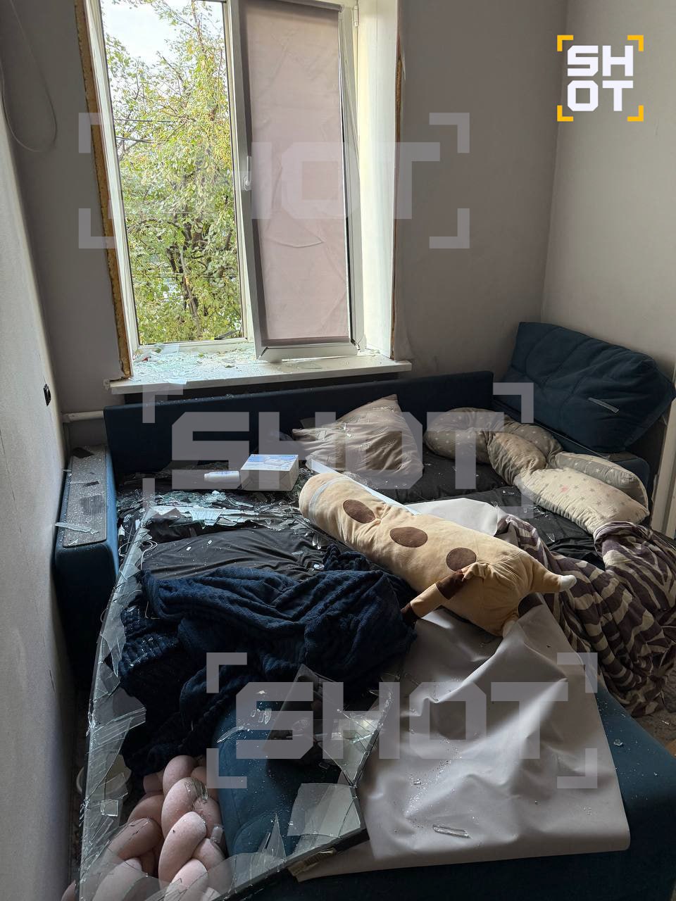 Как рассказала SHOT мать ребёнка, в квартире они находились втроём — с родственником и дочкой. В какой-то момент проснулись от резкого грохота, посыпались стёкла. Одним из осколков задело малыша. Сами взрослые не пострадали. По словам женщины, как минимум двух жильцов этого дома увезли на скорой.