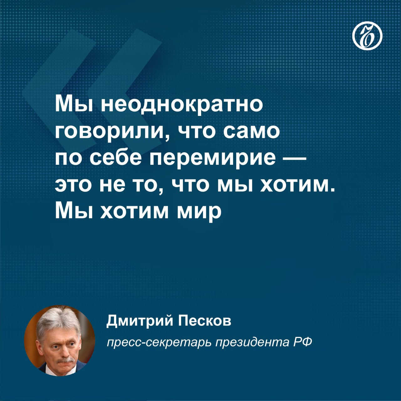 По словам пресс-секретаря президента РФ Дмитрия Пескова, мир наступит только после того, как «будут выполнены наши (России.— прим. «Ъ») условия и достигнуты все поставленные нами цели».