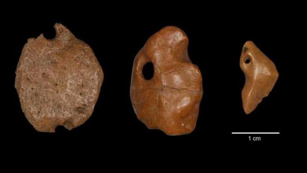 По крайней мере три фрагмента костей были обработаны человеком: имели гладкую полированную поверхность и аккуратно сформированные отверстия, которые явно были просверлены. Авторы пришли к выводу, что предметы, скорее всего, были «личными украшениями» вроде подвески на шее. Среди тысяч необработанных костей, которые были найдены в Санта-Элине эти три разительно отличались.