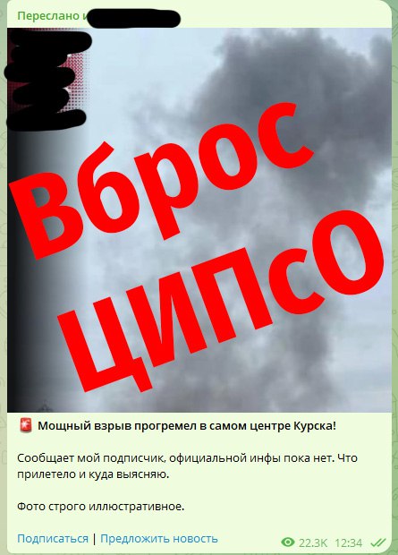 ❗️ЦИПсО не оставляет попытки посеять панику в Курской области во время голосования. Сеть подконтрольных каналов вбрасывает фейки про якобы взрывы в центре Курска. Самый лучший вариант ответа – сходить на свой участок для голосования, если это еще не сделали.