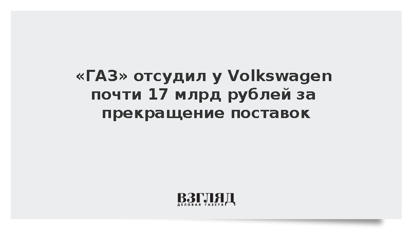 Суд определил взыскать частично с Volkswagen в пользу «ГАЗ» 16,908 млрд рублей и 40 тыс. евро долга, передает РИА «Новости».