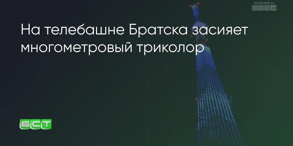 В честь Дня российского флага в Братске засияет телебашня. Триколор осветит Центральный район в девять часов вечера и будет виден до 23:00.