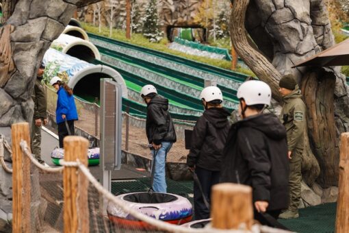 Важным событием для гостей стало посещение тюбингового комплекса. На каждой трассе – от старта до финиша – дети почувствовали себя настоящими покорителями горных склонов. Специальное безопасное покрытие обеспечивало идеальное скольжение, превращая катание в захватывающее приключение.
