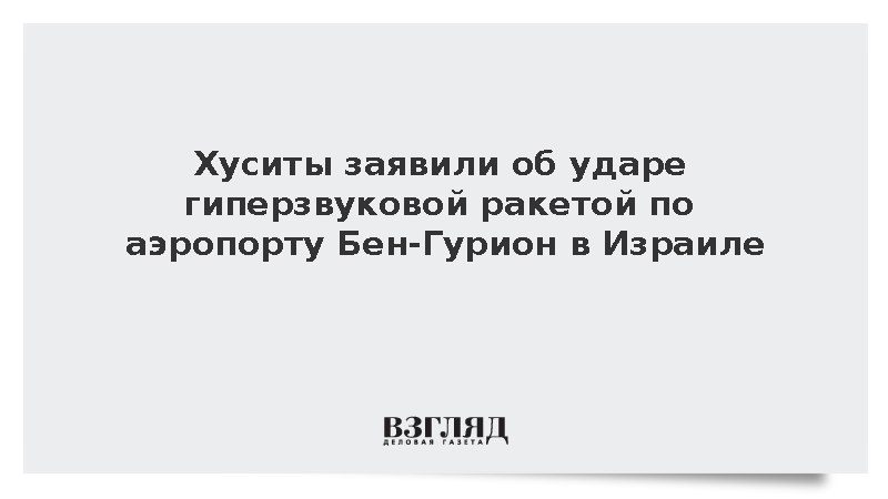 Йеменское движение «Ансар Аллах» заявило об использовании гиперзвуковой баллистической ракеты для атаки на аэропорт Израиля Бен-Гурион, сообщил военный представитель повстанцев Яхья Сариа.