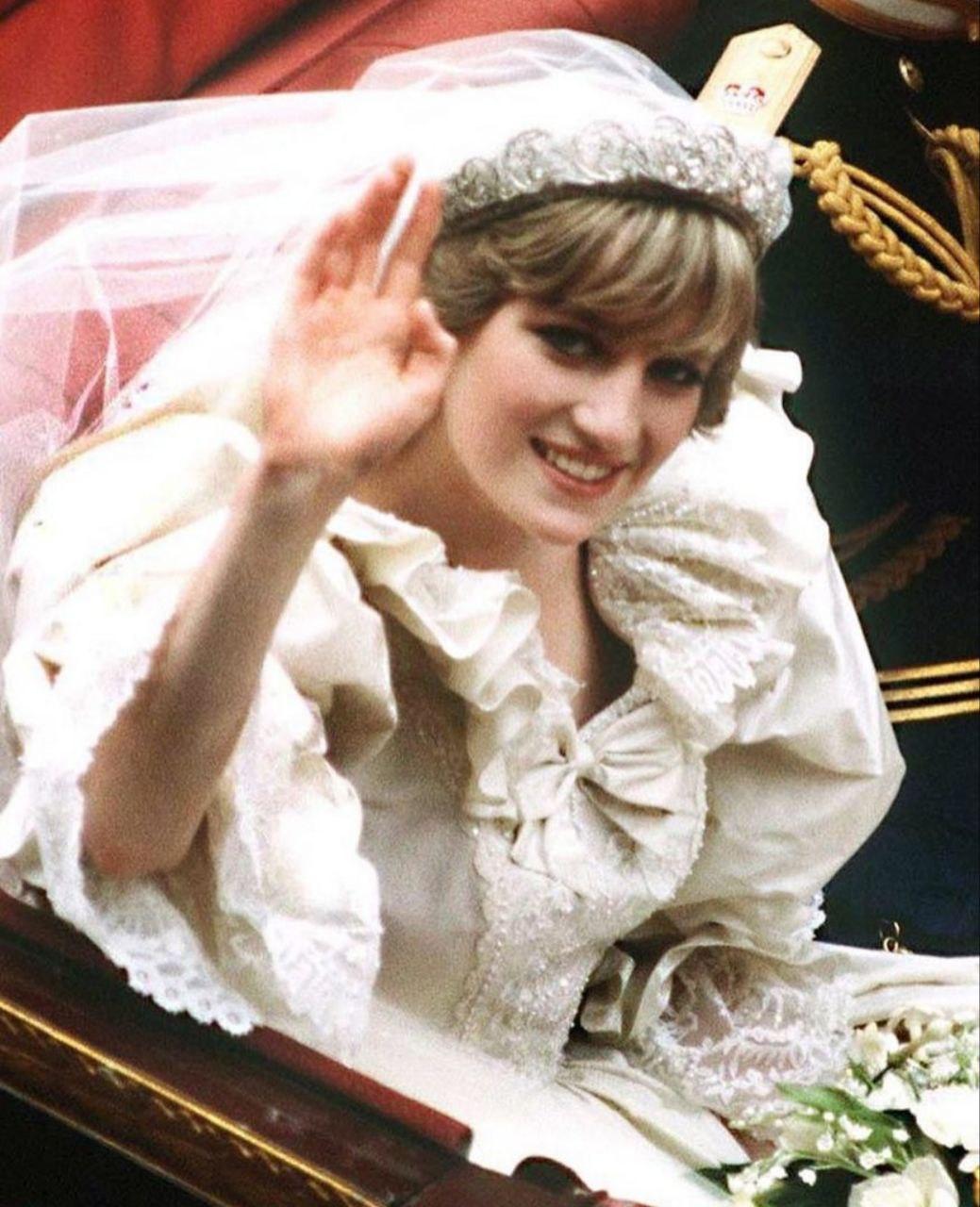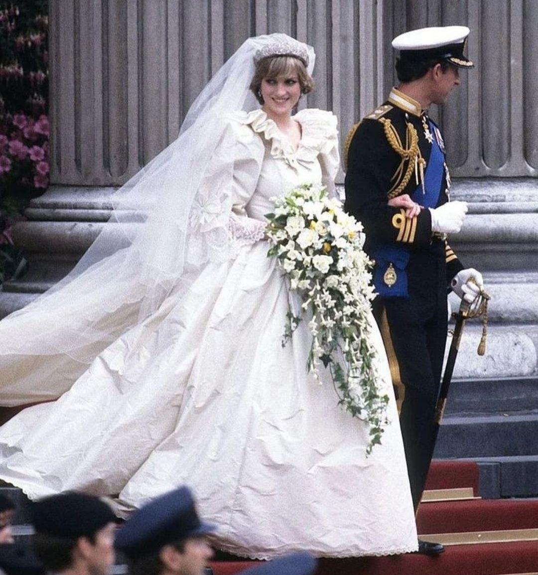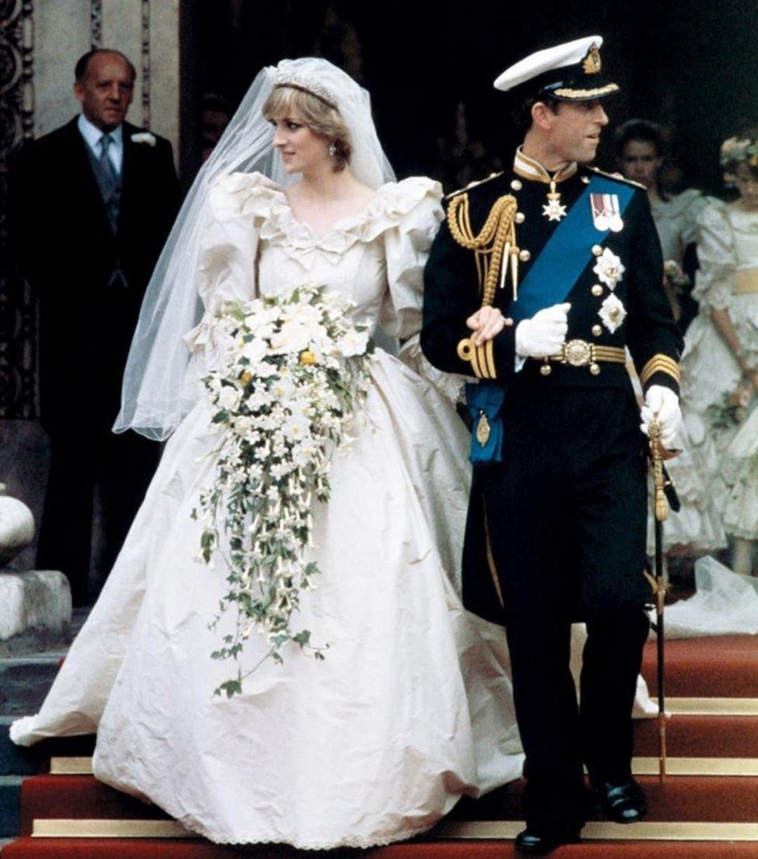 Не удивительно — от этого творения из шелка и тафты захватывает дух. Кремовое платье, расшитое вручную перламутровыми пайетками и жемчужинами, а также знаменитый восьмиметровый шлейф из кружев, которые когда-то принадлежали королевы Марии, сделали его поистине незабываемым. Именно этого и добивались дизайнеры при создании платья, решив побить прошлый королевский рекорд по длине шлейфа: «Мы подняли все архивы королевских свадеб и выяснили, что рекорд длины шлейфа составляет 20 футов. Так что мы предложили Диане сделать его на пять футов длиннее».