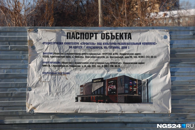 Кинотеатр «Строитель» построили на улице Тотмина в 1970 году, он проработал до начала 2000-х. В 2003 году муниципальный кинотеатр сначала арендовала, а затем выкупила под реконструкцию компания «Фортуна Плюс» — холдинг шарыповского предпринимателя Николая Березинского, который занимался аграрным бизнесом и АЗС. Сейчас права на кинотеатр принадлежат другой фирме Березинского «Фортуна Агро», которая и занимается работами.
