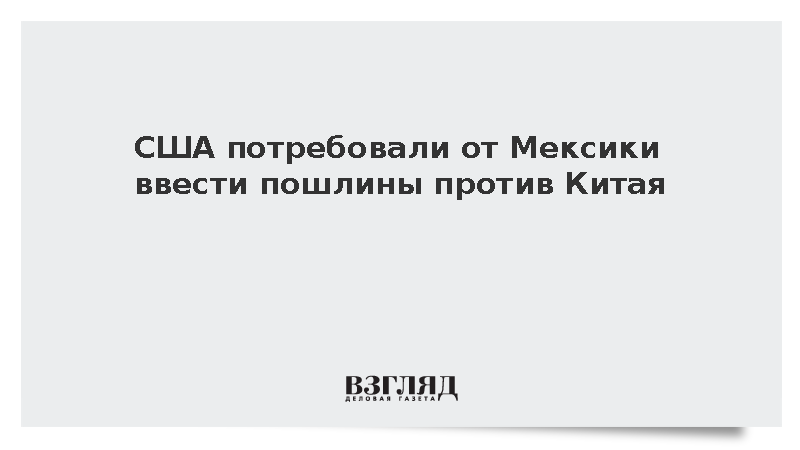 Как сообщил источник Bloomberg, Белый дом «сказал мексиканским чиновникам, что они должны ввести пошлины на товары из КНР, чтобы избежать введения пошлин США», передает РИА «Новости».