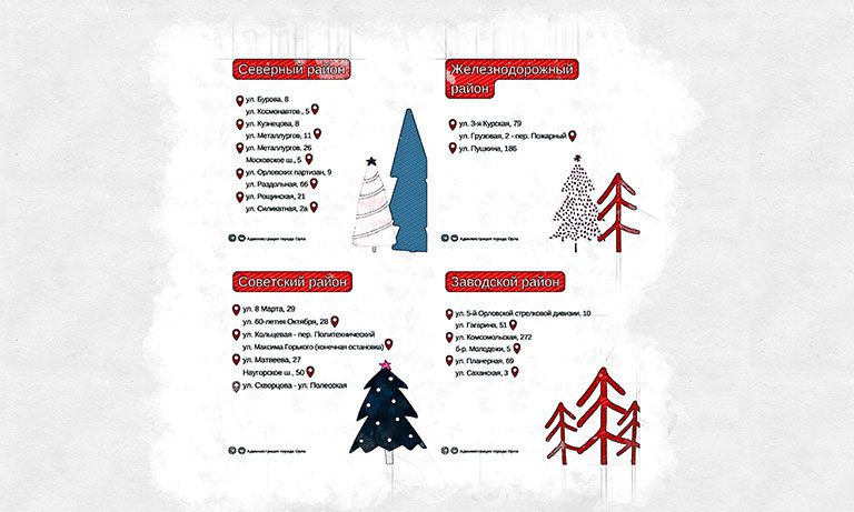 Сдать деревья на экопереработку орловцы могут недалеко от дома. В каждом районе Орла с 15 до 30 января с 7:00 до 23:00 будут открыты пункты приёма. Всего 16 пунктов. Услуга бесплатна.