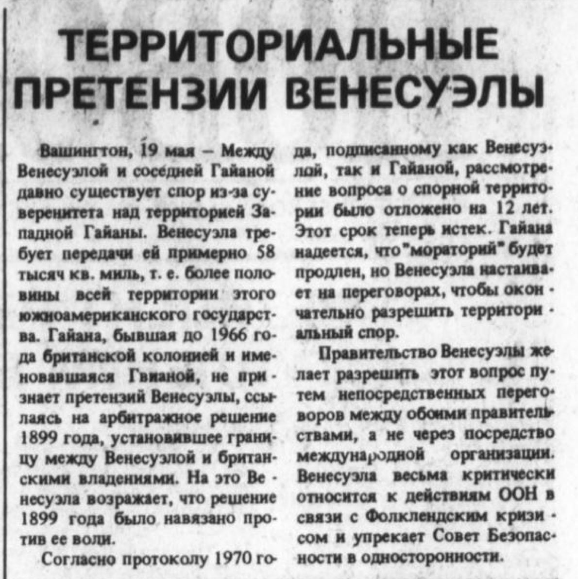 ❗️ Сейчас спор накалился из-за намерения Каракаса «восстановить справедливость» и вернуть значительную часть территории Гайаны под свой контроль. Власти Венесуэлы провели референдум о том, продолжать ли стране претендовать на эту территорию. В итоге 95% жителей поддержали претензии правительства на эту территорию.