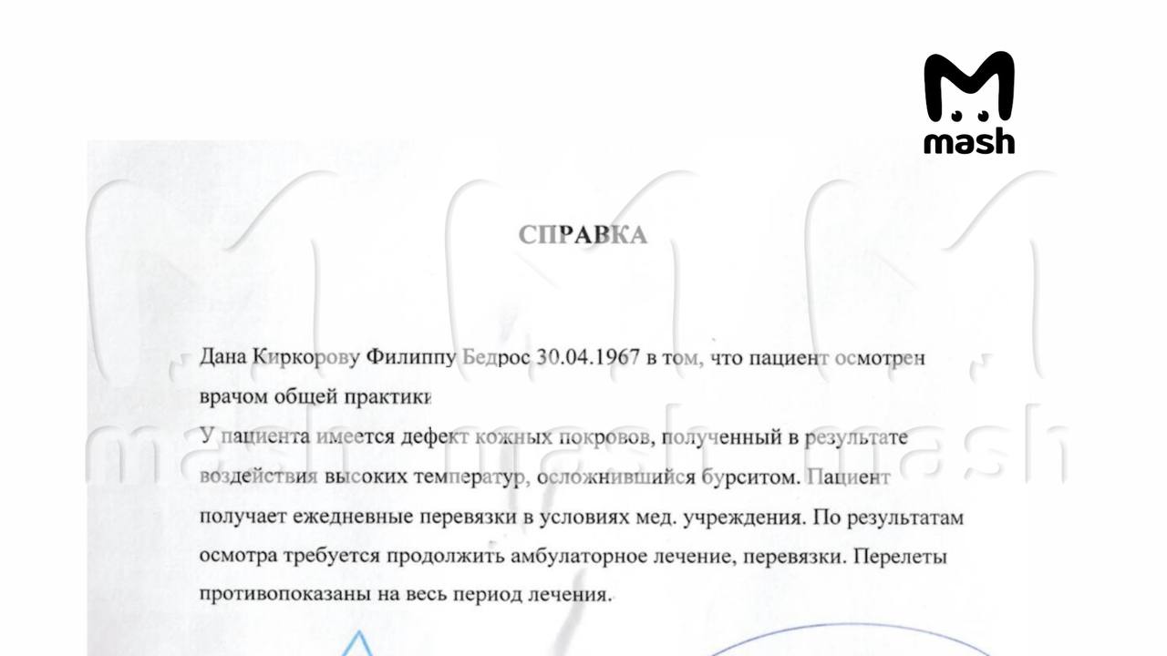 Филиппу Киркорову диагностировали бурсит — воспаление суставов после ожога руки. Поп-король будет проходить перевязку каждый день. Врачи запретили ему авиаперелёты.