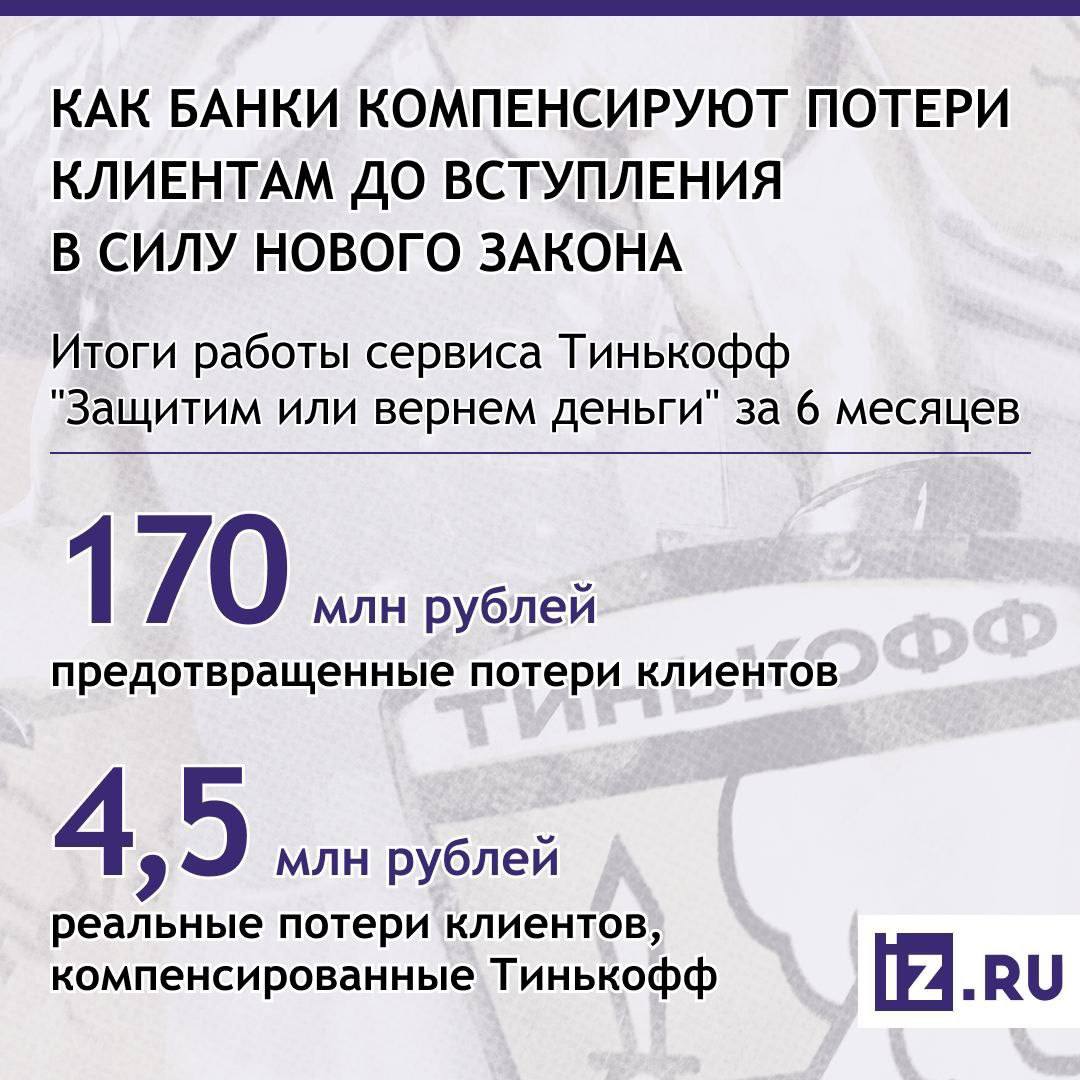 Как стало известно из итогов работы сервиса «Защитим или вернем деньги» за последние полгода, Тинькофф компенсировал клиентам потери на 4,5 млн рублей и предотвратил хищения на 170 млн рублей. Ранее Сбер также заявлял о подобных планах.