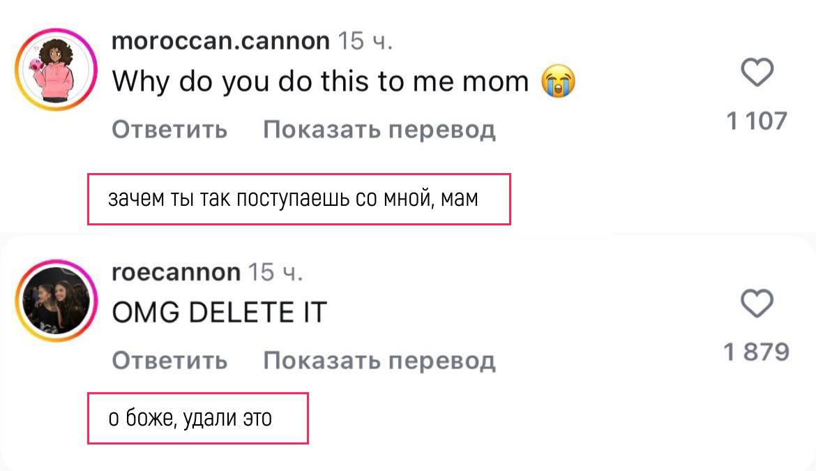 Развлекаться они согласились, но фото выкладывать не разрешали и потребовали немедленно удалить их в комментариях под постом матери.