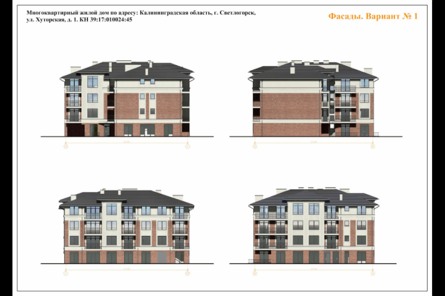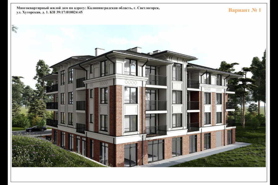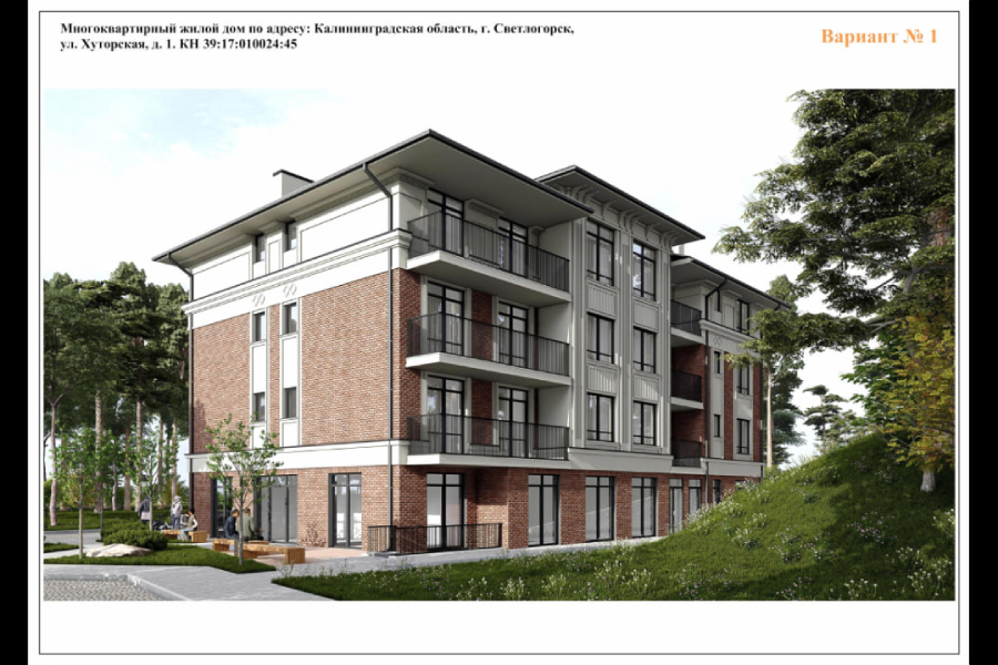 В голосовании градсовета победил проект с кирпичом, штукатуркой и керамической черепицей на фасаде. Дом будут строить на участке с кадастровым номером 39:17:010024:45 в зоне Ж2, где стоит ограничение в 4 этажа.