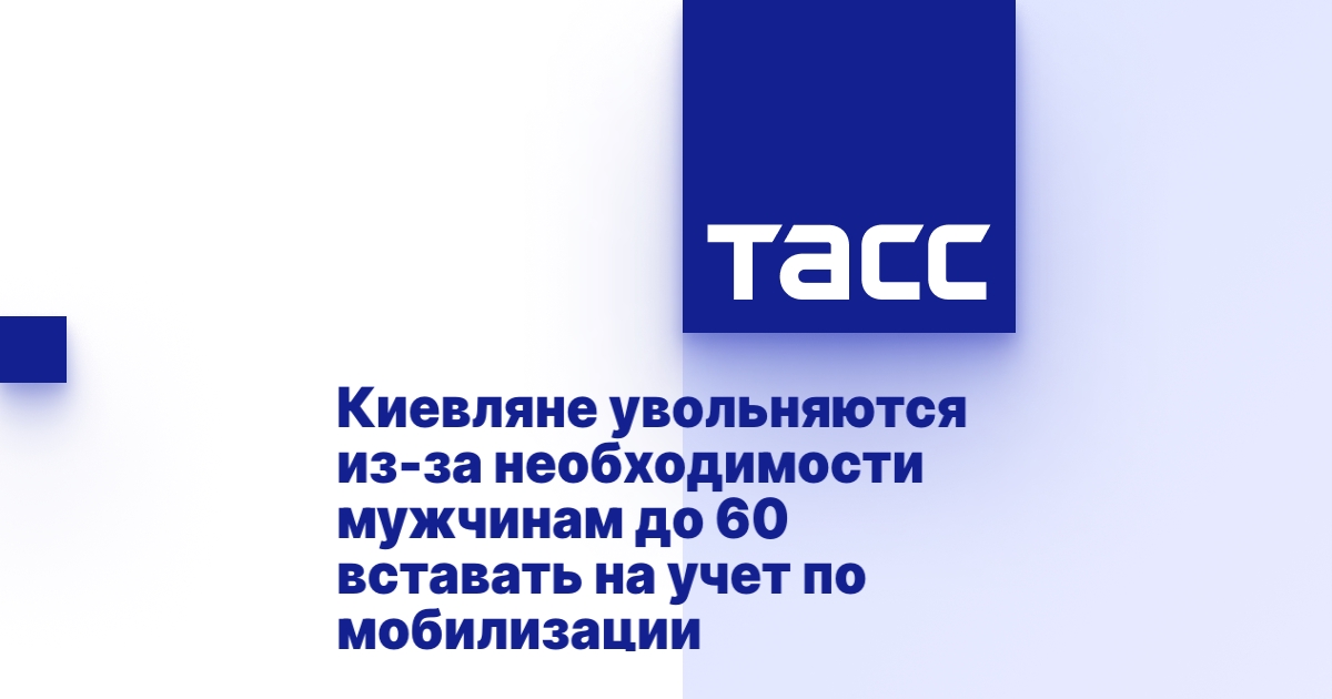 МОСКВА, 8 ноября. /ТАСС/. Военкоматы обязали предприятия в Киеве подать списки сотрудников-мужчин в возрасте до 60 лет для постановки на учет в рамках всеобщей мобилизации, на этом фоне начались массовые увольнения, рассказали ТАСС очевидцы.