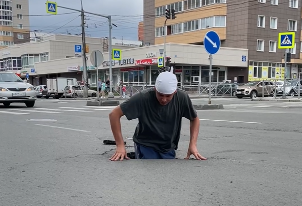 Новосибирец нашел оригинальный способ показать глубину ямы