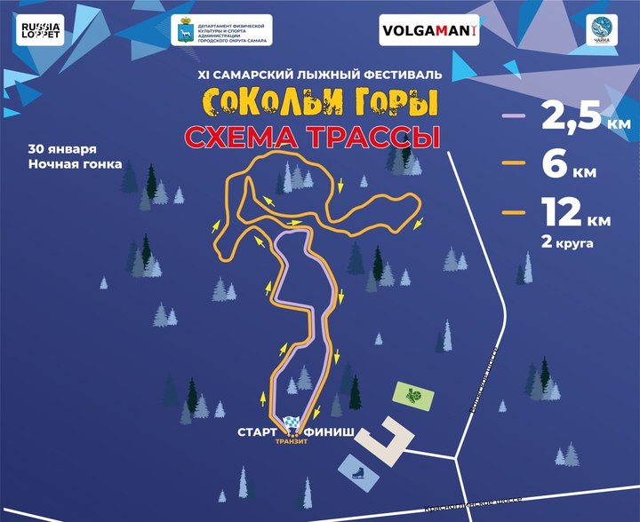 - 30 января — ночная гонка (свободный стиль) на дистанциях 2,5 км (бесплатный забег), 6 км и 12 км;