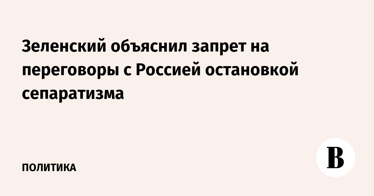 Целью запрета на прямые переговоры с Россией, пока президентом страны является Владимир Путин, была остановка сепаратизма на Украине. Об этом заявил украинский президент Владимир Зеленский на пресс-конференции с президентом Молдавии Майей Санду.