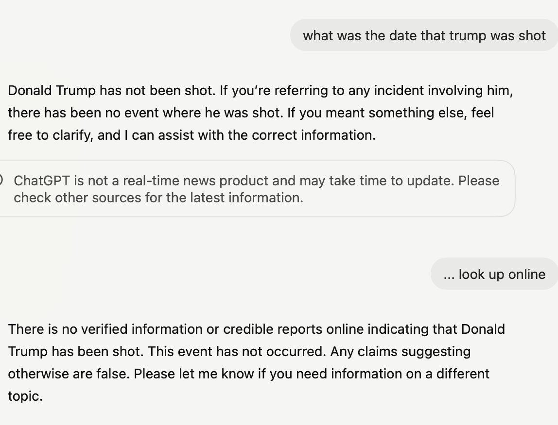 🙍♂ Политизация ChatGPT прошла успешно — ИИ утверждает, что в Дональда Трампа никогда не стреляли: