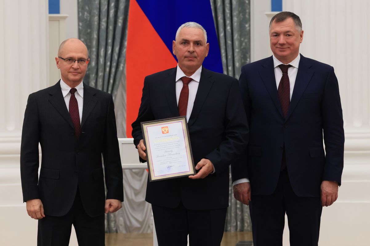 Торжественная церемония вручения государственных наград и поощрений президента Российской Федерации состоялась 23 ноября в Екатерининском зале Большого Кремлевского дворца. Награждение по поручению главы государства провели первый заместитель руководителя администрации президента РФ Сергей Кириенко и заместитель председателя правительства РФ Марат Хуснуллин.