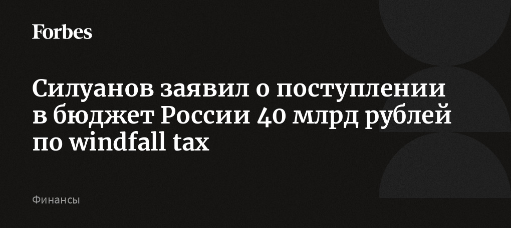 Силуанов заявил о поступлении в бюджет России 40 млрд рублей по windfall tax