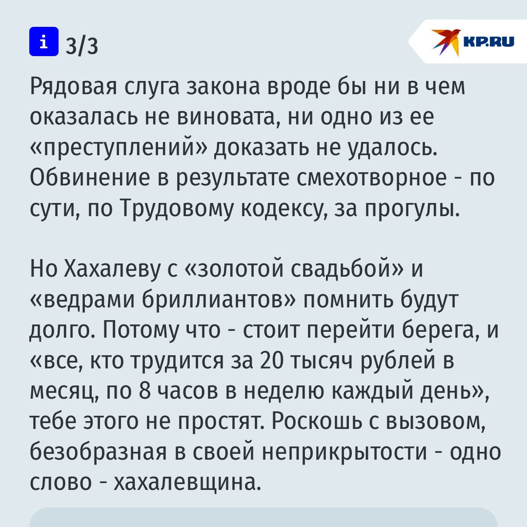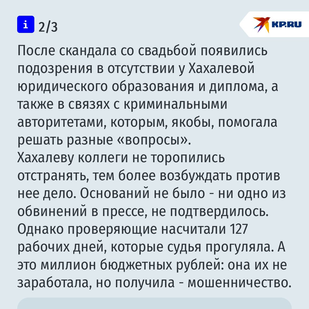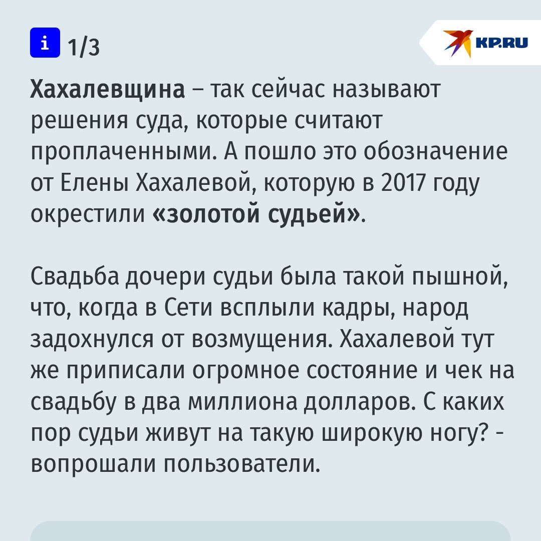 Свадьба, на которой заместитель председателя Краснодарского краевого суда выдала замуж свою дочь, стала в 2017 году, стала последней каплей в море. - Мама у невесты – огонь. Такой огонь, что Краснодар горит, - кричал со сцены Басков, в обнимку с Меладзе и Хахалевой. Заинтересовались, наконец, откуда такие деньги у судьи. А она ведь и раньше не скрывала, что "у нее бриллиантов ведра". Убегая в 2021 году за границу, в Грузию, что-то она успела распродать, а большая часть с самого начала была записана на родных, в том числе на экс-супруга Роберта – "предпринимателя широкого профиля".