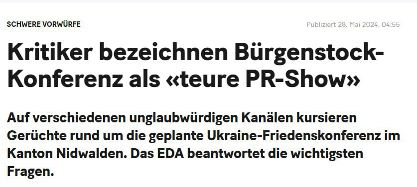 20 Minuten: «Критики называют конференцию в Бюргенштоке дорогим пиар-шоу»;