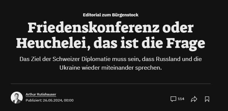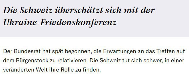 Neue Zürcher Zeitung: «Мирная конференция по Украине: Швейцария переоценила свои силы».