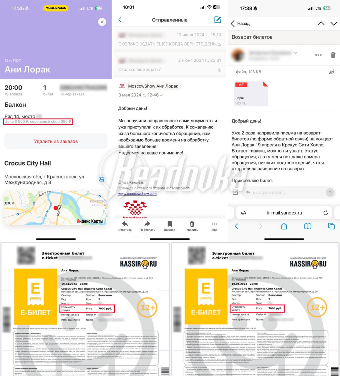 Как рассказали купившие билеты Readovka, как только артистка заявила о переносе концерта, они сразу же попросили организатора шоу сделать возврат денежных средств за приобретенные билеты. У каждого человека были разные цены за «тикеты» — у кого-то ₽3,5 тыс, кто-то потратил на них порядка ₽15 тыс за 2 штуки, а кто-то купил билеты покруче — за ₽50 тыс. Написав на почту, люди начали ждать ответ. Организатор мероприятия выслал необходимую инструкцию, как оформить возврат билетов. Люди выполнили все условия, и компания стала неохотно отвечать на сообщения.