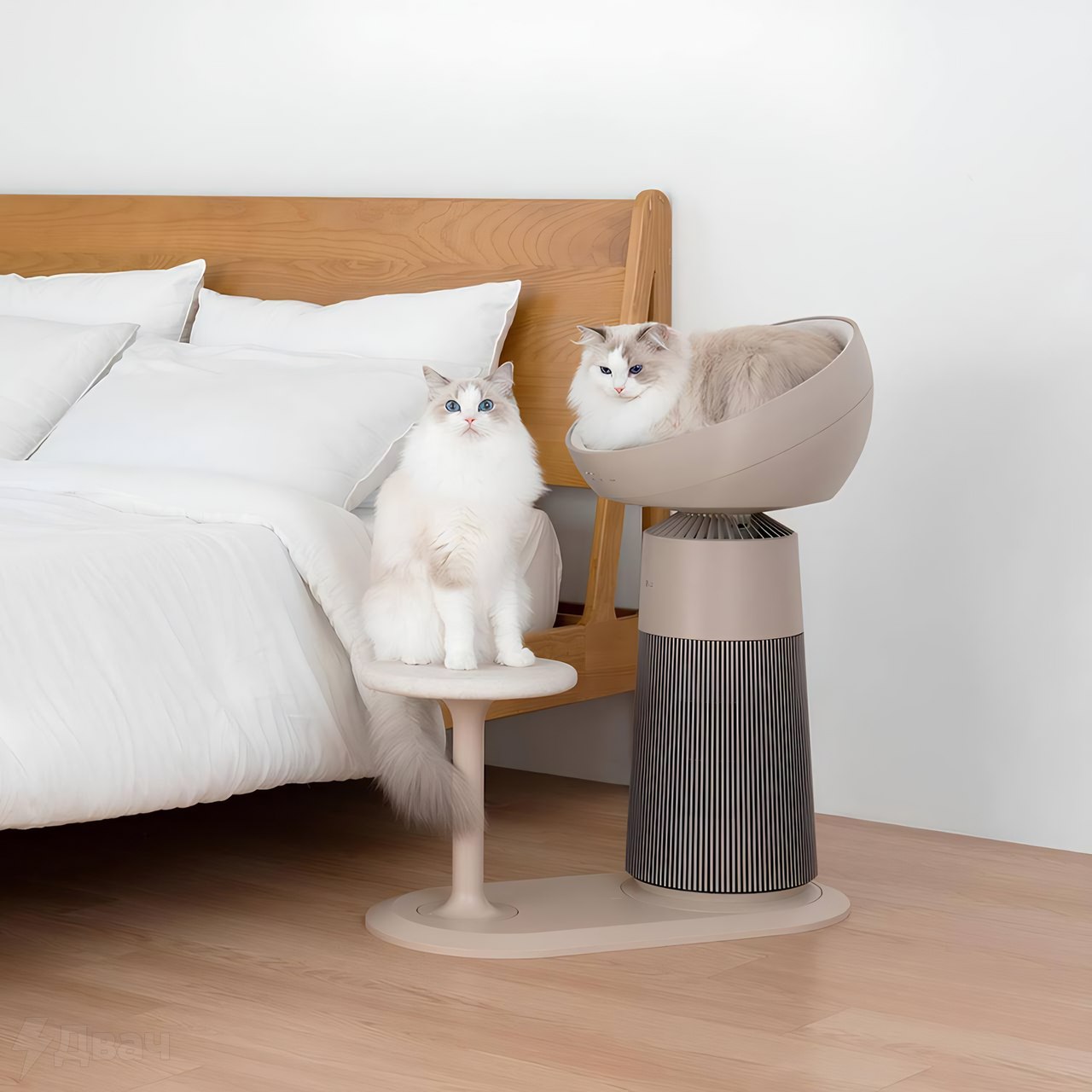 LG представили очиститель воздуха, оснащённый… лежанкой для кошек: устройство содержит стандартные датчики для контроля влажности и температуры, но его основная особенность заключается в том, что лежанка фиксирует вес шерстяного и предупредит вас в случае его резких изменений.